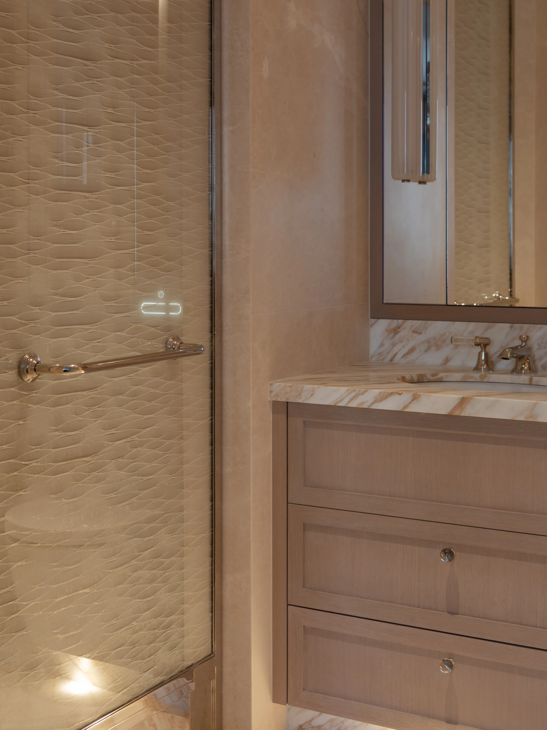 This exceptional Mayfair apartment was fully reconfigured and refurbished to create a refined, quietly luxurious three-bedroom residence, designed in close collaboration with Thomas Hamel Associates. The project focused on bringing clarity and cohesion to the layout, fully restructuring the internal arrangement to improve flow, proportion, and the relationship between spaces.